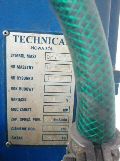 Sprzedam piaskarkę - śrutownicę kabinową OPI 700 z automatycznym zasypem ścierniwa.Dok. techniczna.